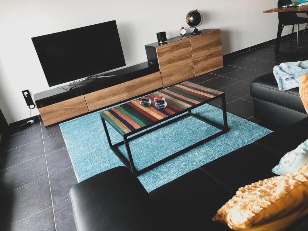 Het appartement heeft een moderne, lichtrijke inrichting! Er is ook een nieuwe slaapzetel aanwezig voor 2 personen of om als lounge zetel in te relaxen. Er is een SMART televisie, WIFI & digitale televisie van Telenet. Er is ook een eettafel met 4 goedzittende stoelen voorzien en voor de gezelligheid kan de LED verlichting worden gedimd. Gezellig apero op terras of aan de bar in de keuken…jij kiest!