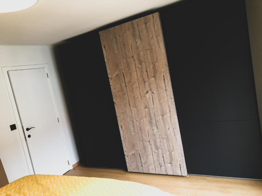 Het appartement beschikt over een zéér ruime slaapkamer met een accentmuur en nieuwe boxspring voor 2 personen. Er is een donsdeken en 2 kussens voorradig. U hoeft dus enkel bedlinnen mee te nemen voor het donsdeken, kussens en matrasovertrek. Tevens door de zeer grote kleerkast is opbergen geen enkel probleem! Er is ook een klein terras voorzien aan de slaapkamer. Het grote raam bied alvast veel lichtinval.